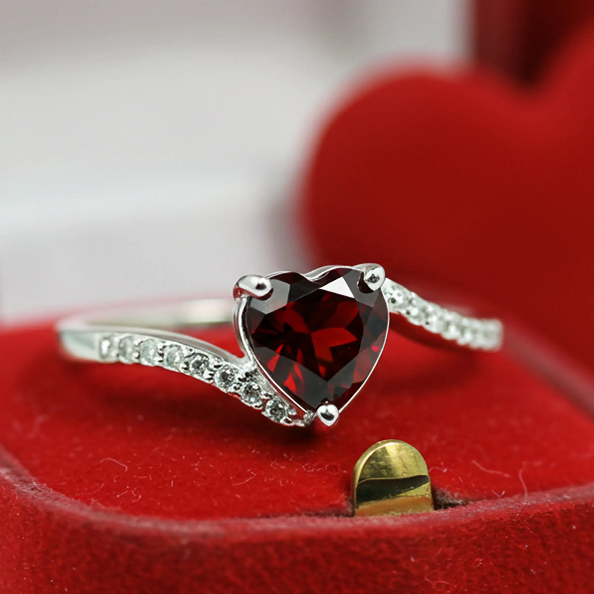 Red Garnet Brave Heart Silver Ring